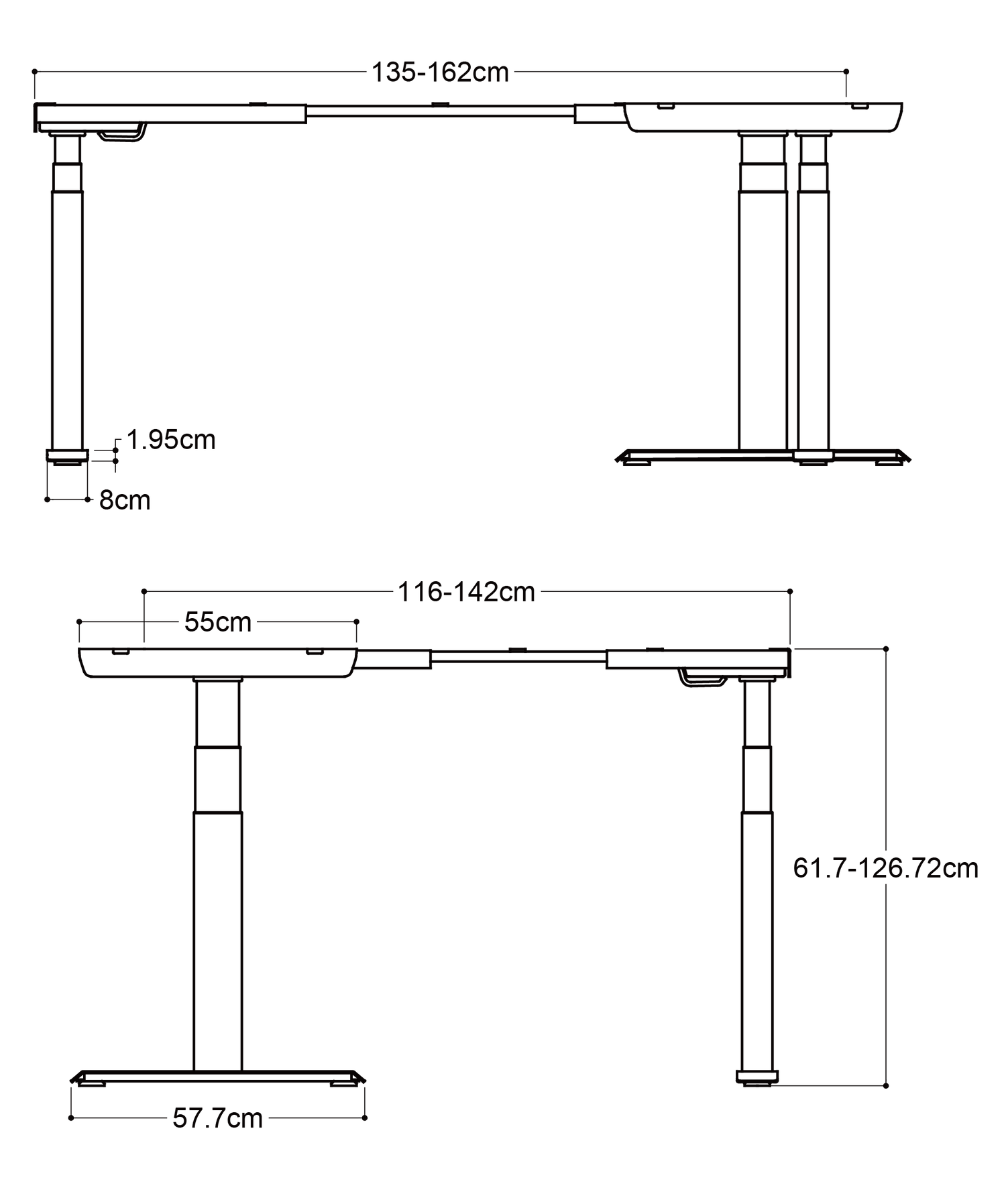 - Höhenverstellbarer Bereich: 61,7-126,7 cm (exklusive Tischplatte)