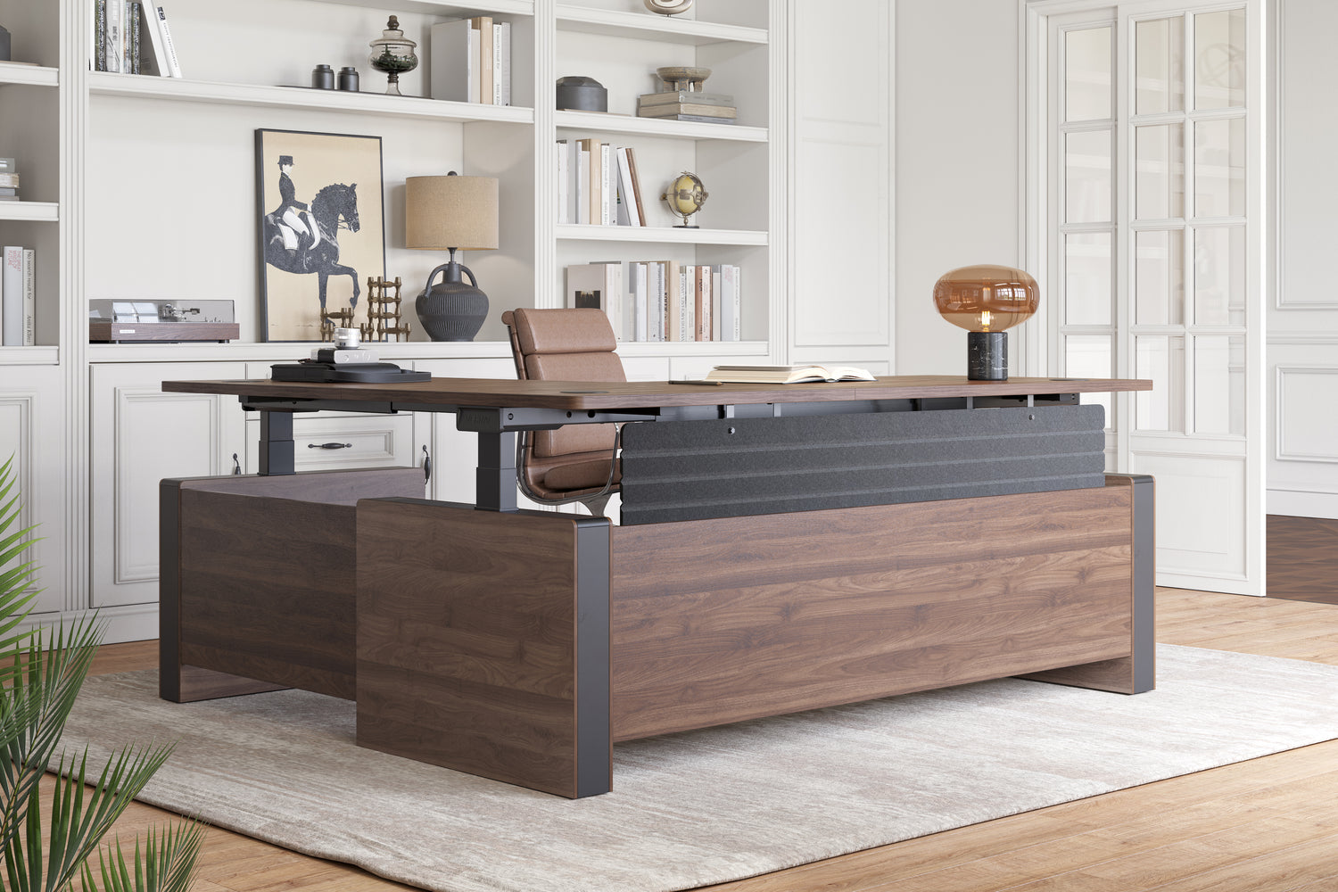 Genießen Sie das Gefühl der Sicherheit, das mit erhöhter Privatsphäre einhergeht. Die Executive Stehschreibtisch-Schale bietet eine diskrete Arbeitsumgebung, frei von Ablenkungen.