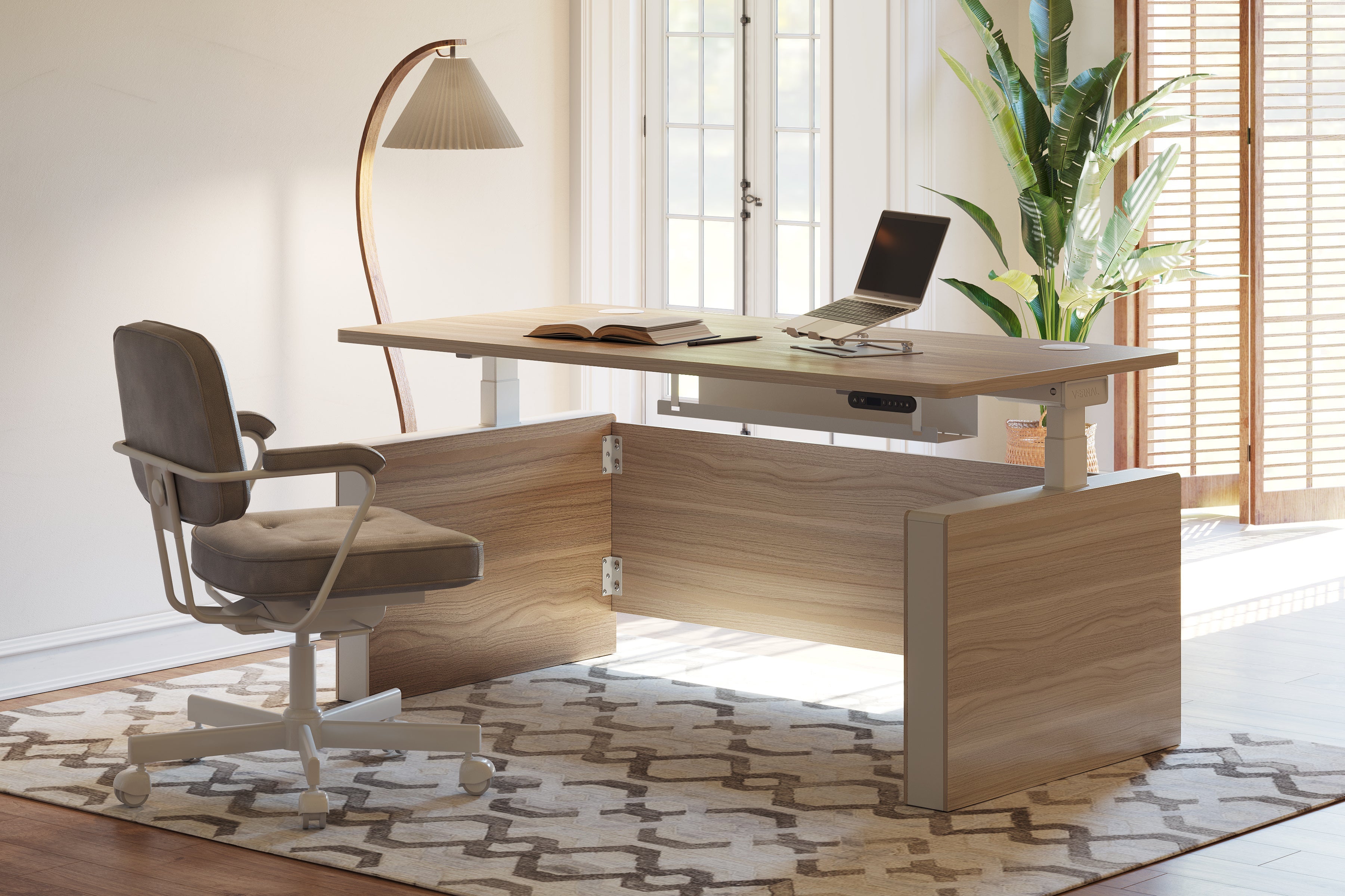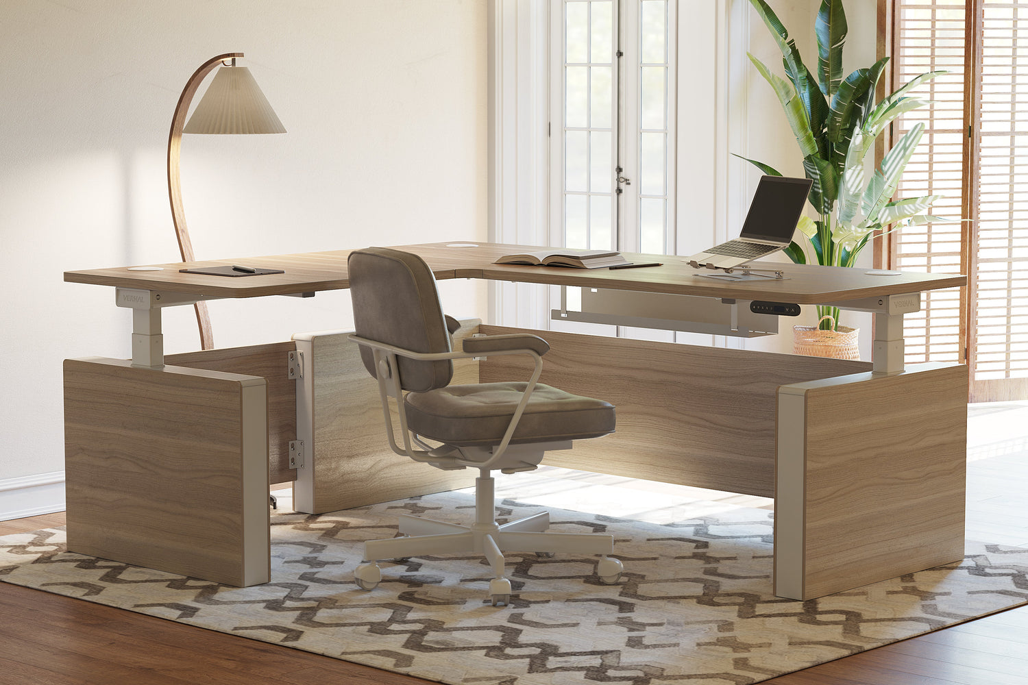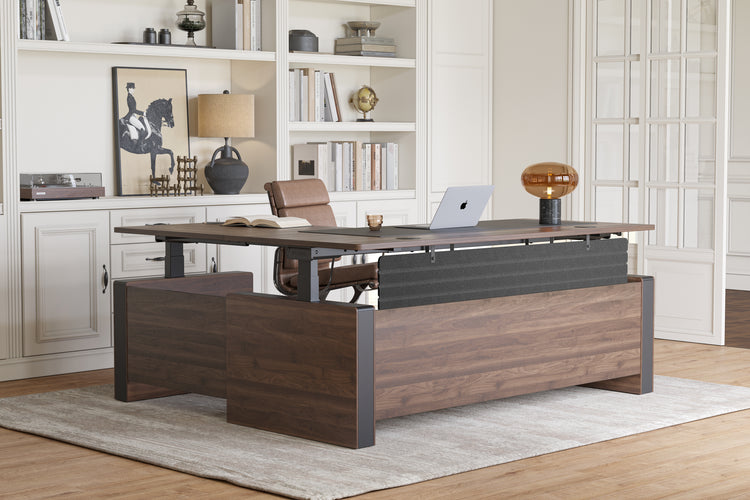 Tauchen Sie mit Vernal Executive Stehschreibtisch-Schale in eine exklusive Arbeitswelt ein. Die dreiseitigen Sichtschutzpaneele schaffen einen abgeschirmten und hochwertigen Arbeitsbereich. Gleichzeitig fördert das Design des Stehschreibtischs die Bewegung, sodass Sie mühelos zwischen Sitzen und Stehen wechseln können, um Ihre Produktivität zu steigern.