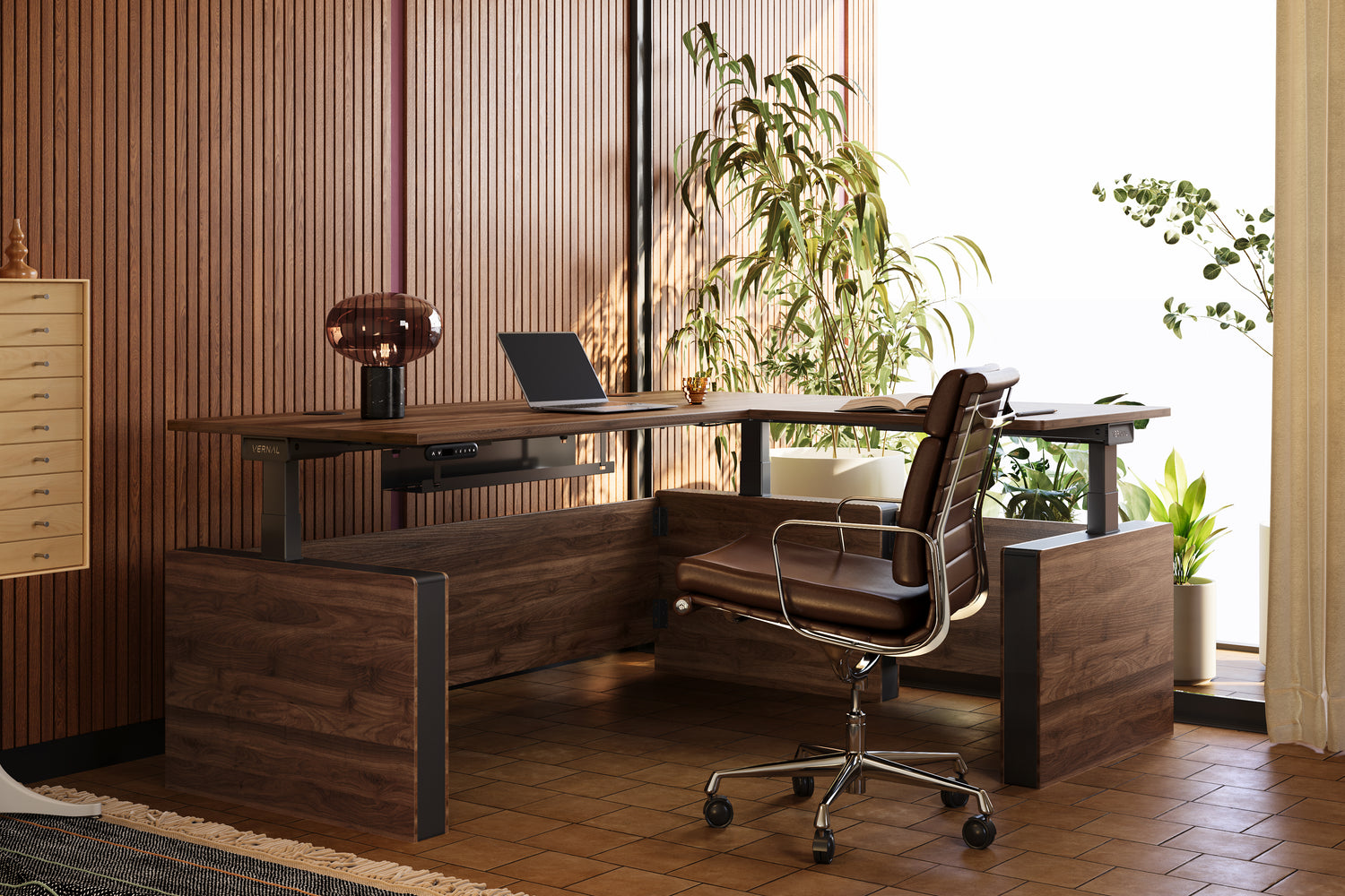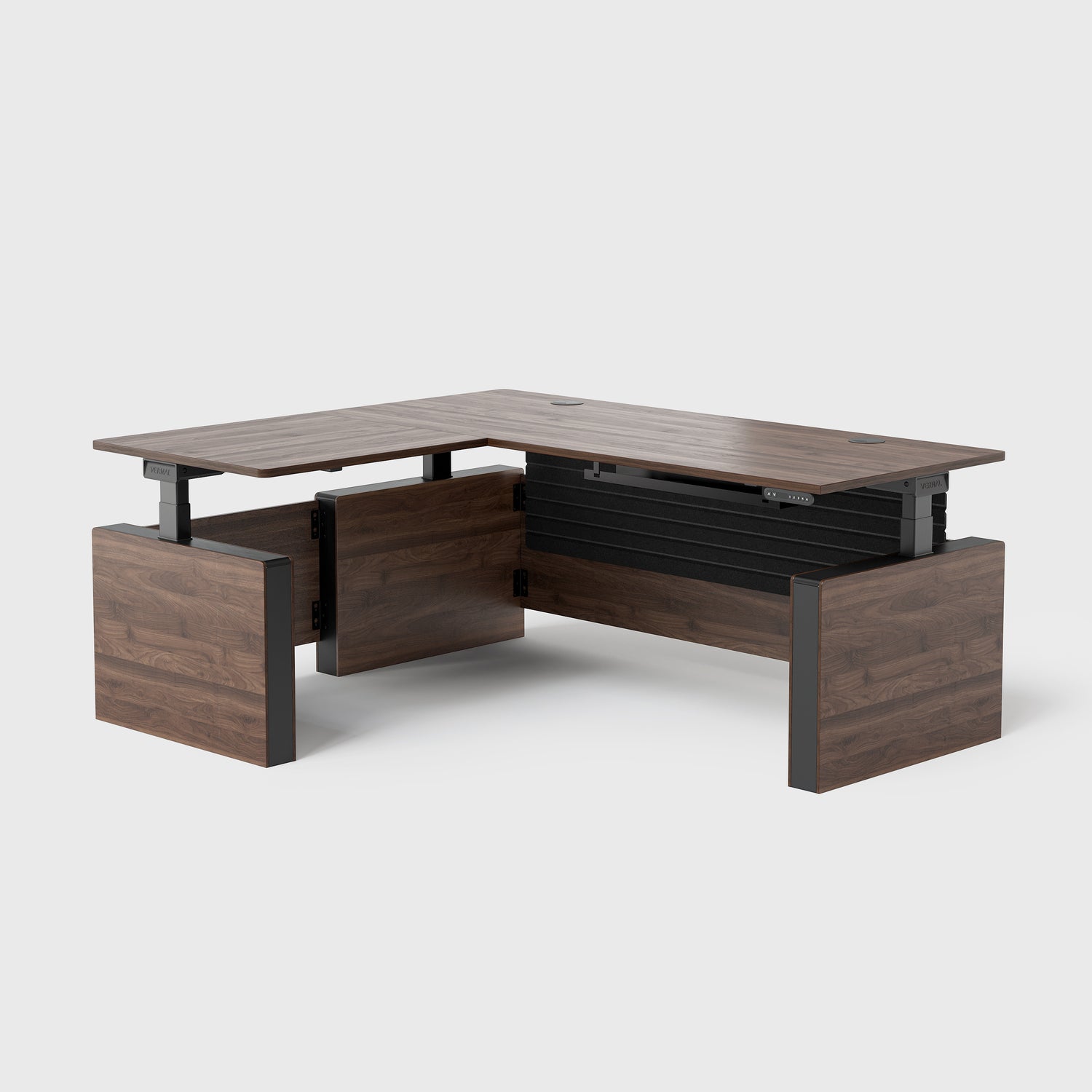 Das traditionelle C-Bein-Design verringert die Stabilität des Hubtischs, während der T-Bein-Rahmen den Beinraum beeinträchtigt, wenn die Tischhöhe niedrig ist. Vernal wurde durch umfangreiche Tests entwickelt, so dass der Rahmen in der perfekten Position fixiert ist, um den Beinraum zu vergrößern und die Stabilität nicht zu beeinträchtigen.